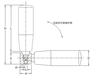 JS.103005 可折手柄 顏色:亮光黑 材質(zhì):酚醛樹脂(膠木)或增強(qiáng)尼龍 用途:適用于各類機(jī)械上緊固位置的靈活調(diào)節(jié) 特性:手柄拉出后可90度折疊,提高設(shè)備在運(yùn)行中的安全性