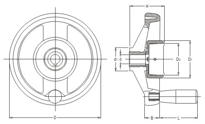 JS.105006 雙輻表盤(pán)手輪 顏色:黑色 材質(zhì):酚醛樹(shù)脂(膠木)、鋁合金 用途:適用于木工、食品、包裝、印刷等機(jī)械的精密指示或讀數(shù)調(diào)節(jié) 特性:外形美觀、堅(jiān)固耐用、機(jī)械式結(jié)構(gòu)、