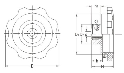 JS.105007 波紋表盤手輪 顏色:黑色 材質(zhì):酚醛樹脂(膠木)、鋁合金 用途:適用于木工、食品、包裝、印刷等機(jī)械的精密指示或讀數(shù)調(diào)節(jié) 特性:外形美觀、堅(jiān)固耐用、機(jī)械式結(jié)構(gòu)
