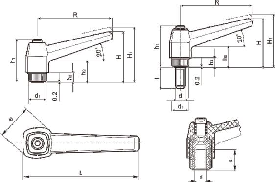 特性:手柄體部分可以垂直拉起,并沿裝配軸旋轉(zhuǎn)至其他角度后落下,從而讓使用者在增加杠桿扭力的同時(shí),方便?课恢,更加有力的調(diào)整操作