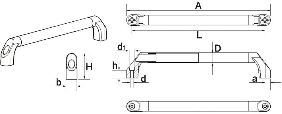 材質:管身(鋁合金)、拉手支座(增強尼龍含30%玻璃纖維)